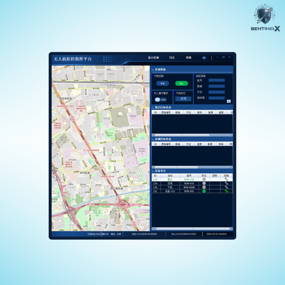 The STX-800 Command and Control System serves as the central management platform for integrated counter-drone operations. It combines data from radar systems, RF detection equipment, and electronic countermeasures to provide real-time situational awareness and coordinated defence response.